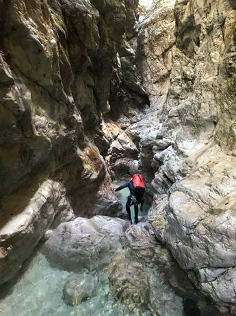 The training for the Canyoning Guide lasts 9 days, the first few days of the module take place in Slovenia - Bovec and its surroundings. Then the travel part of the module starts. We go abroad (Italy, Austria, Switzerland, Montenegro, etc.) where we encounter more challenging canyons. Candidates organise themselves, no sleeping or transport is provided. Each day, after the tour, we decide which canyon we will go to the next day and where will we meet. As we are improving our guiding skills in Module 2, for each day one of the candidates is assigned to take on the role of guide, whose task is to prepare and lead the next day's tour. Intensive canyoning within the module is the best way to apply the knowledge learnt in Module 1 and at the same time to acquire the skills of an independent guide. In Module 2, candidates are introduced to the following theoretical and practical subjects: